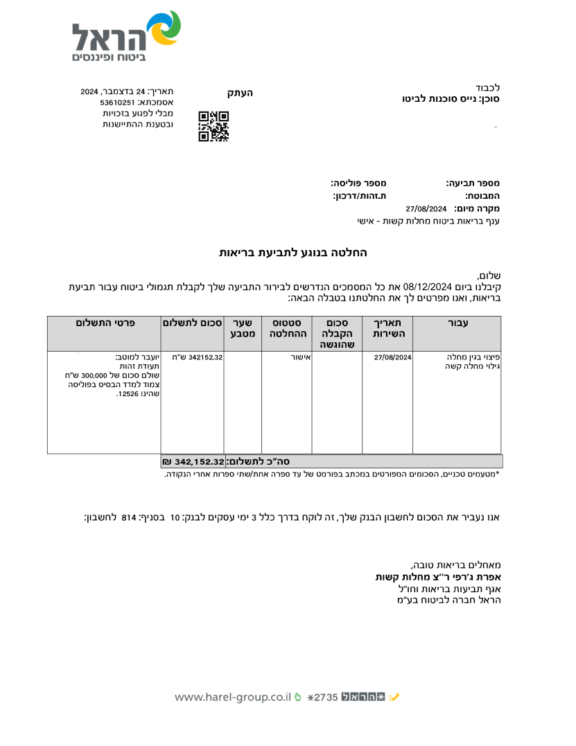 בחלק הזה נציג מקבץ קטן של אישורי תביעות והמלצות של לקוחות שלנו בעקבות הטיפול שלנו בתיקים שלהם.